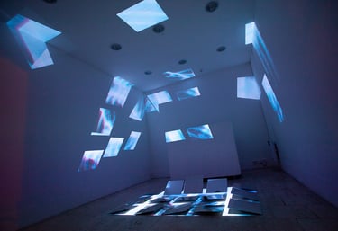 multimedia installation through emerging technology exploring architectural video-sculptures